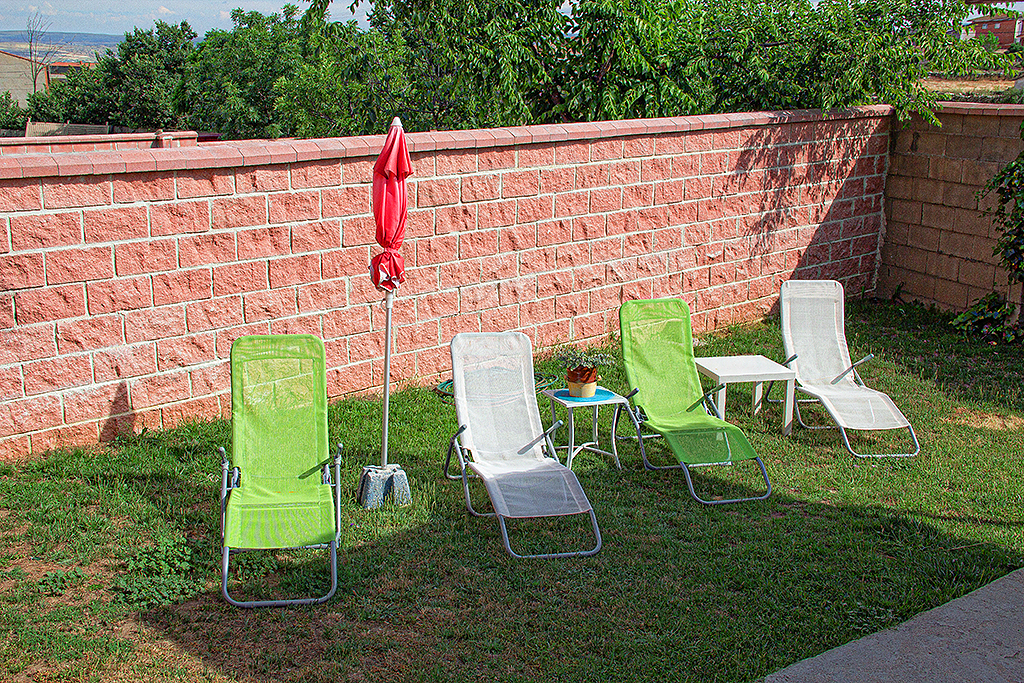 También desde aquí se accede al jardín y a la barbacoa, para realizar cenas o comidas de manera cómoda.