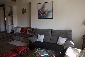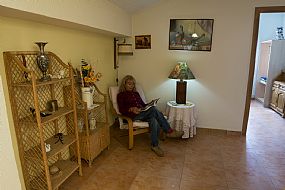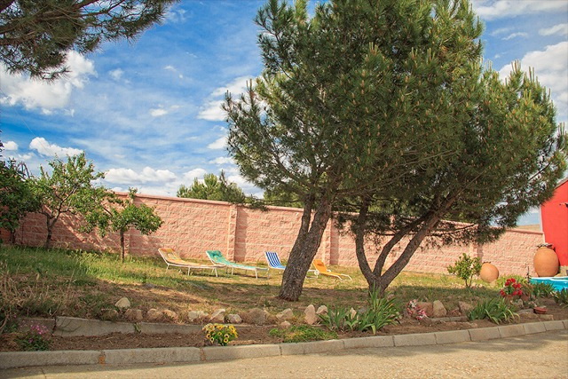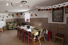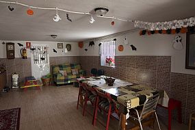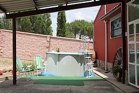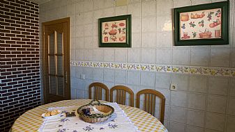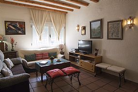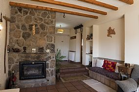 SALÓN: Las raíces sicilianas de la propietaria , se asoman en algunos de los detalles con que la casa ha sido decorada. Por otra parte, esta decorada con un estilo castellano, baldosas de barro, chimenea de piedra, vigas de madera, lámparas de hierro y cerámica.. Desde su interior también se accede al garaje, transformado en sala de reuniones, equipado totalmente para poder realizar celebraciones con los amigos o la familia, con juegos, música, tumbonas, una gran mesa..