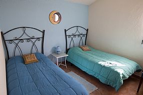 La casa tiene 5 habitaciones, dos de matrimonio (una de ellas con baño interno y cama de 1.80m) y tres dobles, distribuidas a su vez en dos semiplantas.