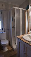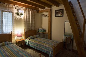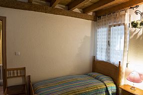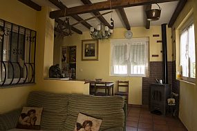 tiene, 2 dormitorios dobles, uno de ellos abuhardillado, un baño con ducha, una cocina totalmente equipada, un comedor con estufa de leña, un salón con dos sofás televisión via satélite; y todo ello en una gran finca con barbacoa, muebles de jardín, piscina desmontable.
